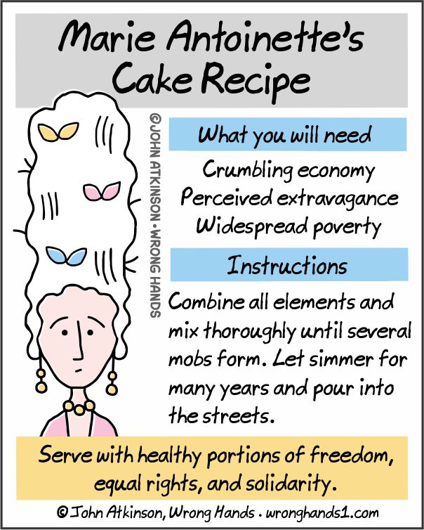Posted in Cartoon | Tagged cake, Cooking, France, French Revolution, Funny, History, Humour, John Atkinson, Marie Antoinette, Recipes, Webcomic, Wrong Hands | 4 Comments