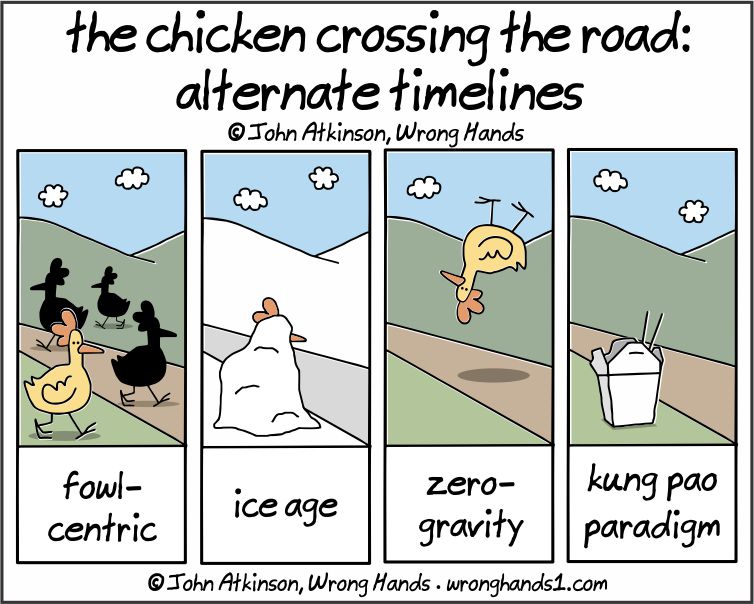 the chicken crossing the road: alternate timelines